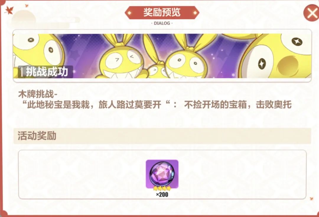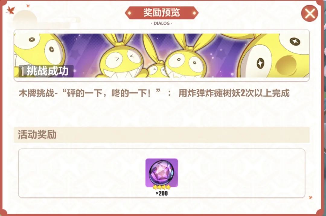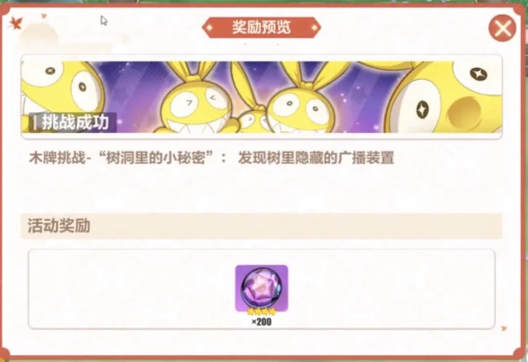 这个木牌挑战只要在清完怪之后与树进行互动即可达成。
