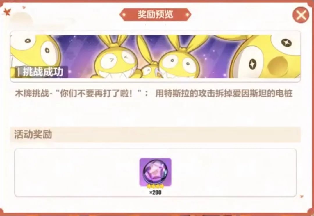 走位诱导特斯拉攻击爱因斯坦的电瓶(车?)达成一次即可完成本关的木牌挑战。