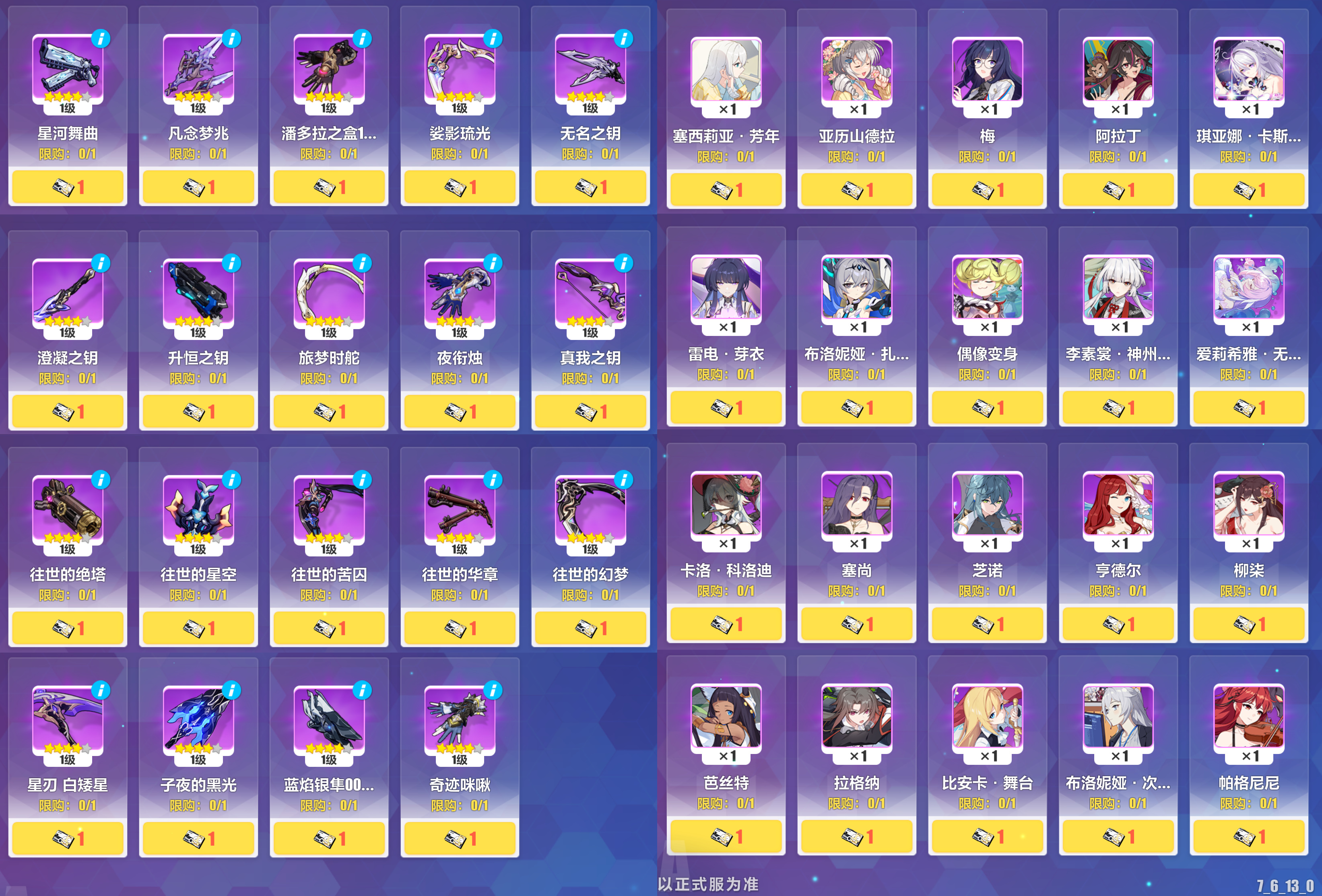 其他角色如果缺武器或圣痕毕业,也可以换取。主要考虑旧辅助角色还能用一段时间,输出已经盖板了。