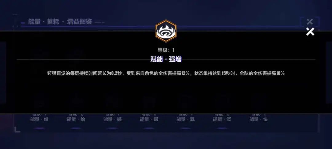 赋能·强增延长能量·蓄耗的【狩猎直觉】每点sp转化层数的保持时常,并且一直消耗能量保持15秒后有额外增伤。