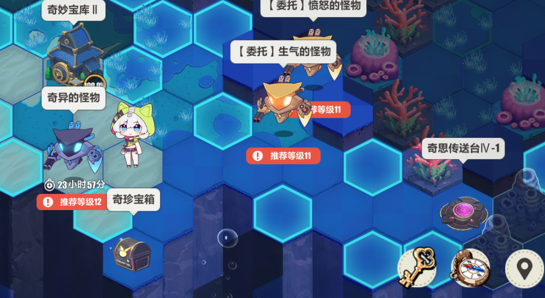 在提交完克莱茵的要求后,琪亚娜阵营来到(4,-21),凯文阵营来到(25,-12)使用指南针即可解锁最后一项藏宝图的奖励。