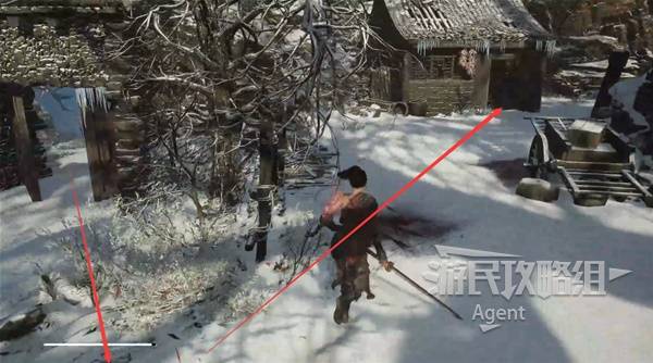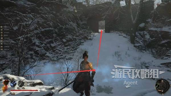 1、从落雪小道神龛出来后,左拐来到云顶外城。