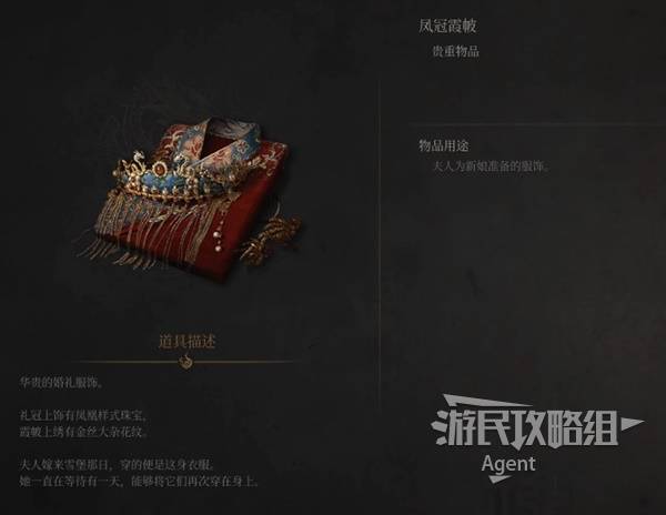 和沈静安对话得到【贵重物品】凤冠霞帔。