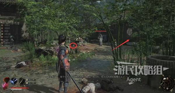 含光禅院需要钥匙才能开的门旁边,听竹子院里敌人聊天,得知被抓来的两个小孩,大的跑了,小的脑袋掉了还死死抓着面人。
