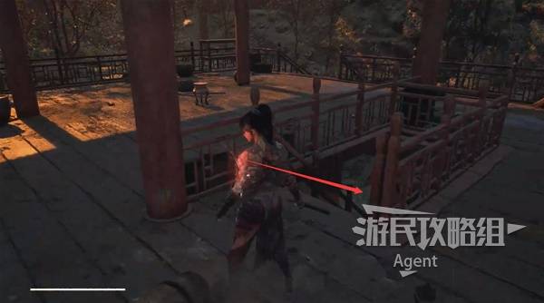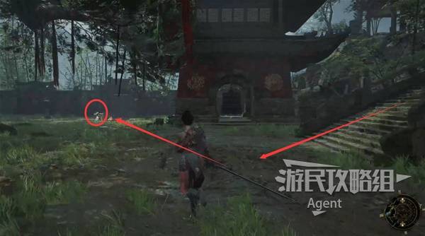 1、游戏一开始从普元寺出来,走下长阶梯来到寺院,看到院子中间一棵粗壮的大树,右拐和篝火旁坐着的老船夫对话,练习战斗。