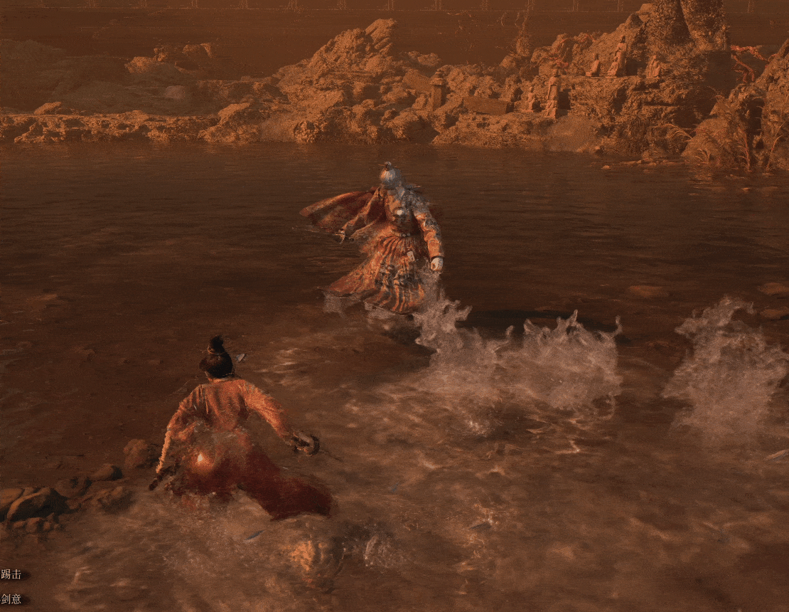 水波剑气 (2阶段常驻):红岚放剑气之前会先后撤拉开距离然后举剑蓄力,掐好提前量闪避