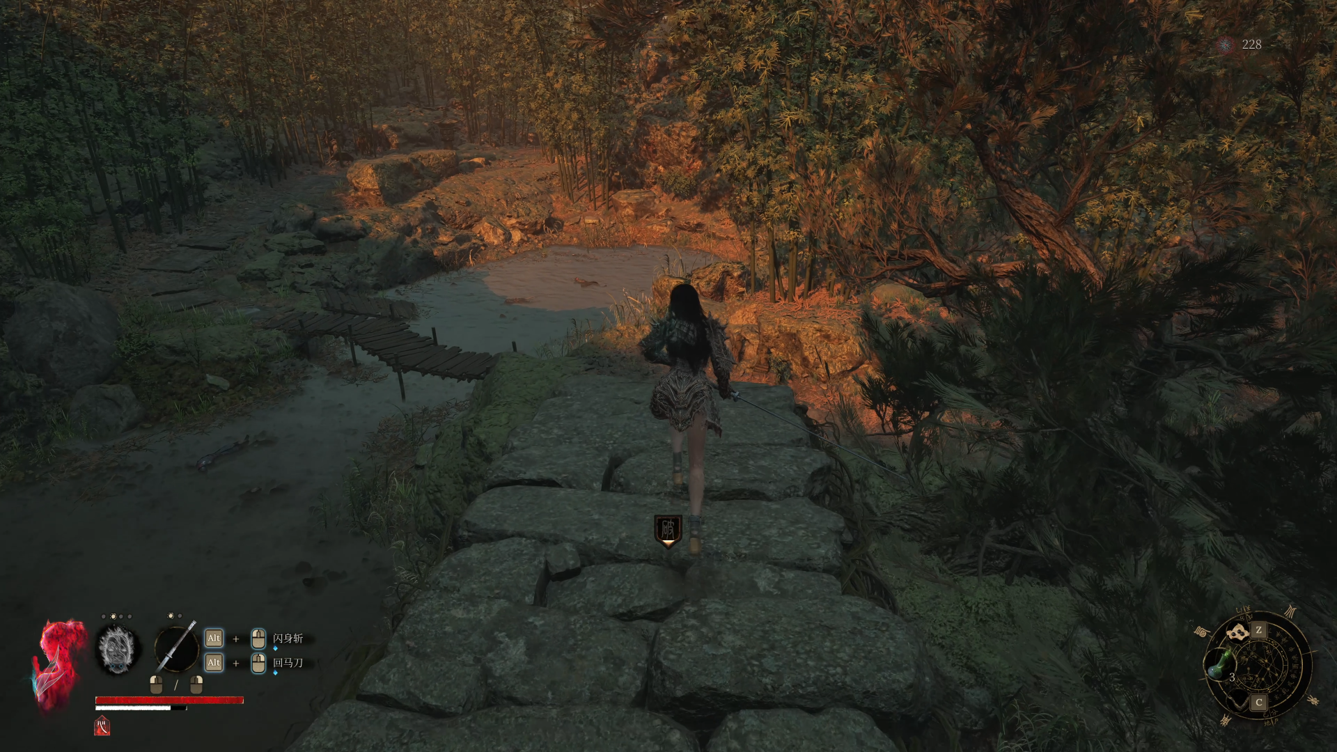 走上台阶后是一段木桥,过桥后就进入了敌人防守较密集的区域。桥后敌人数量明显增多,沿途分布着数个小兵和一名火枪怪。火枪怪虽然血量和防御不高,但射击频率很快,伤害高,且容易打断你的动作,因此建议优先解决