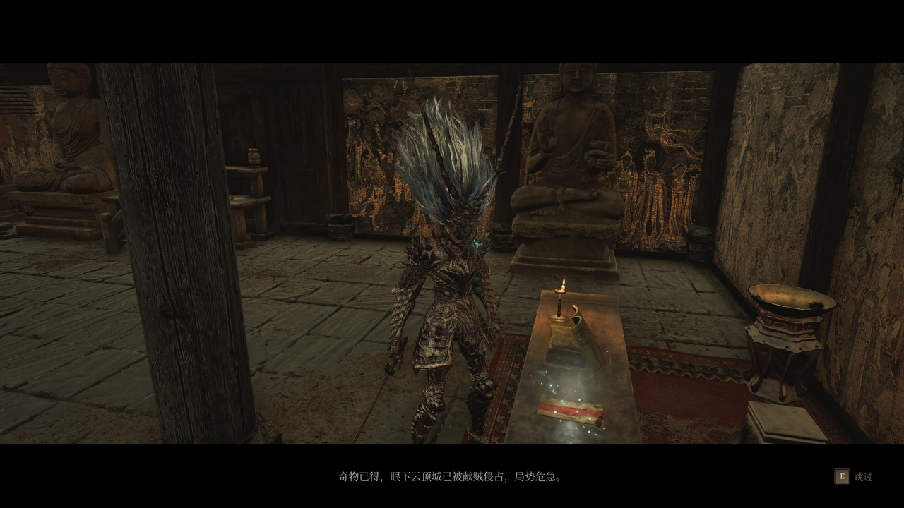 走到佛像前,与跪坐在地的瑜夏交谈,她情绪低落地告诉你,张献忠的尸体被刘文秀运走到了真武观。她请求你如果有关于此事的消息一定要第一时间告诉她。交谈结束后,你就可以动身离开普元寺