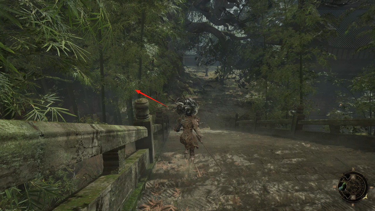 沿着狭窄的小路走到悬崖边时,突然有一只小怪从后方扑上来抱住你的头。这时切忌慌张,保持冷静,等小怪落地后再将其击杀即可。这里靠近悬崖,操作失误容易坠落,务必小心