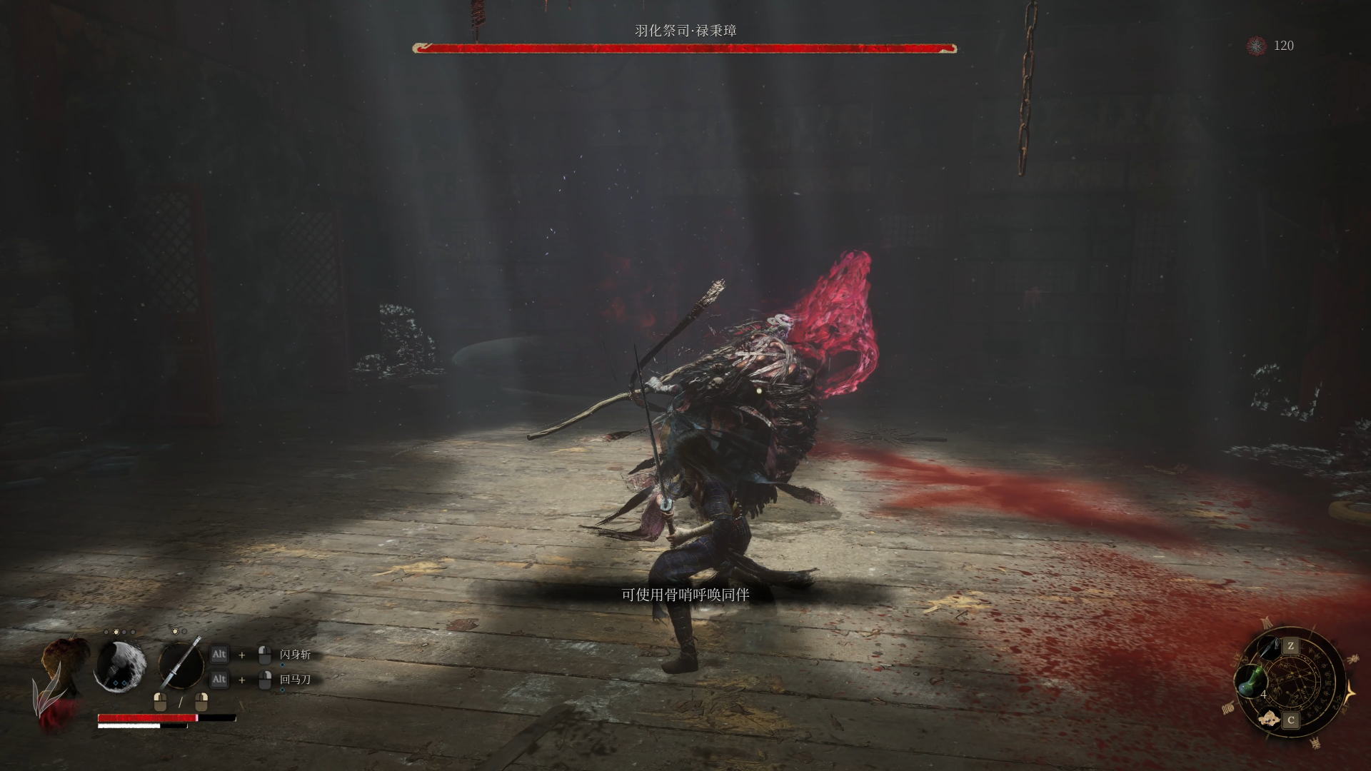 在进入boss战后出现提示便可使用【骨哨】召唤助战npc啦,npc可以帮我们吸引大量火力,让我们拥有安全的输出空间
