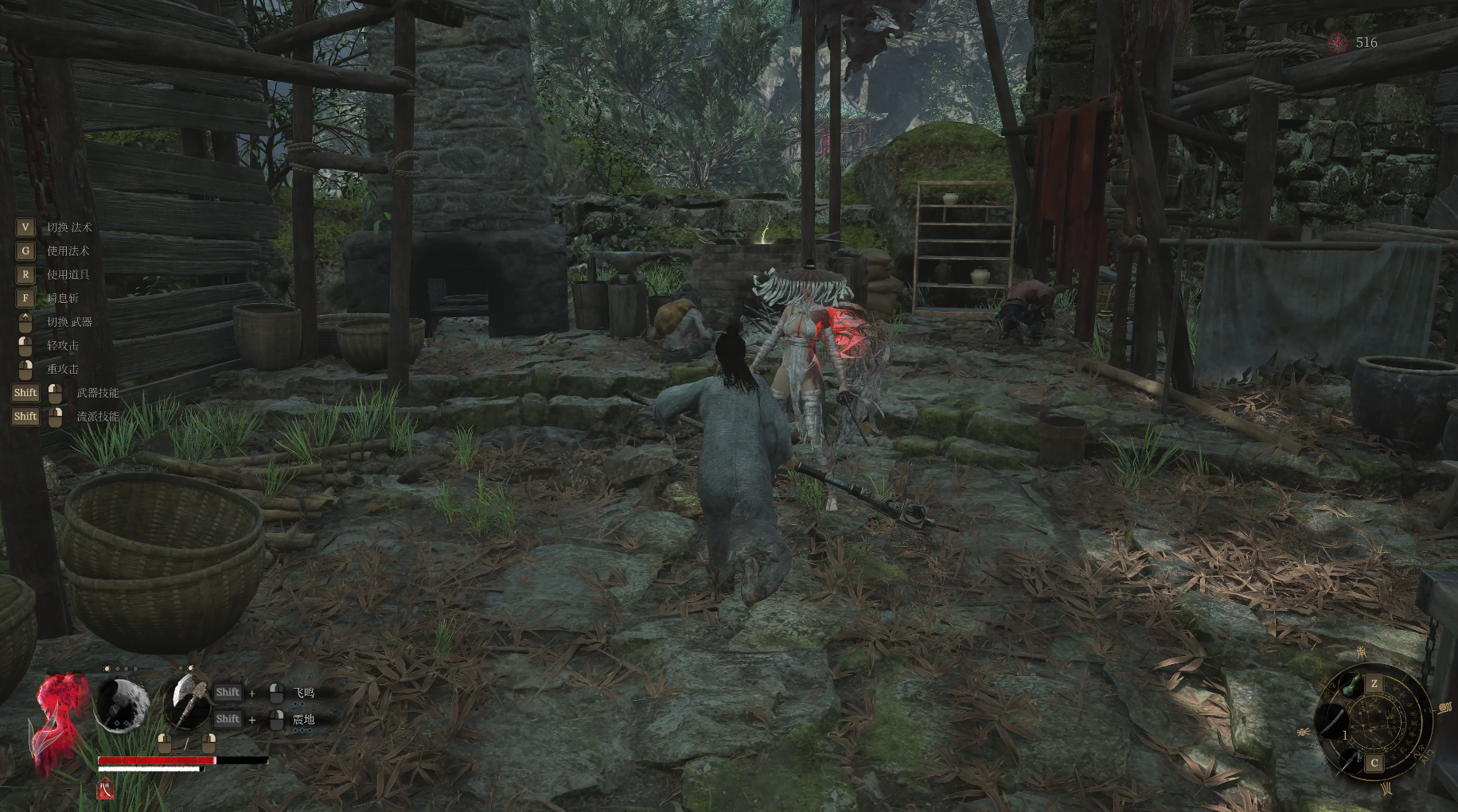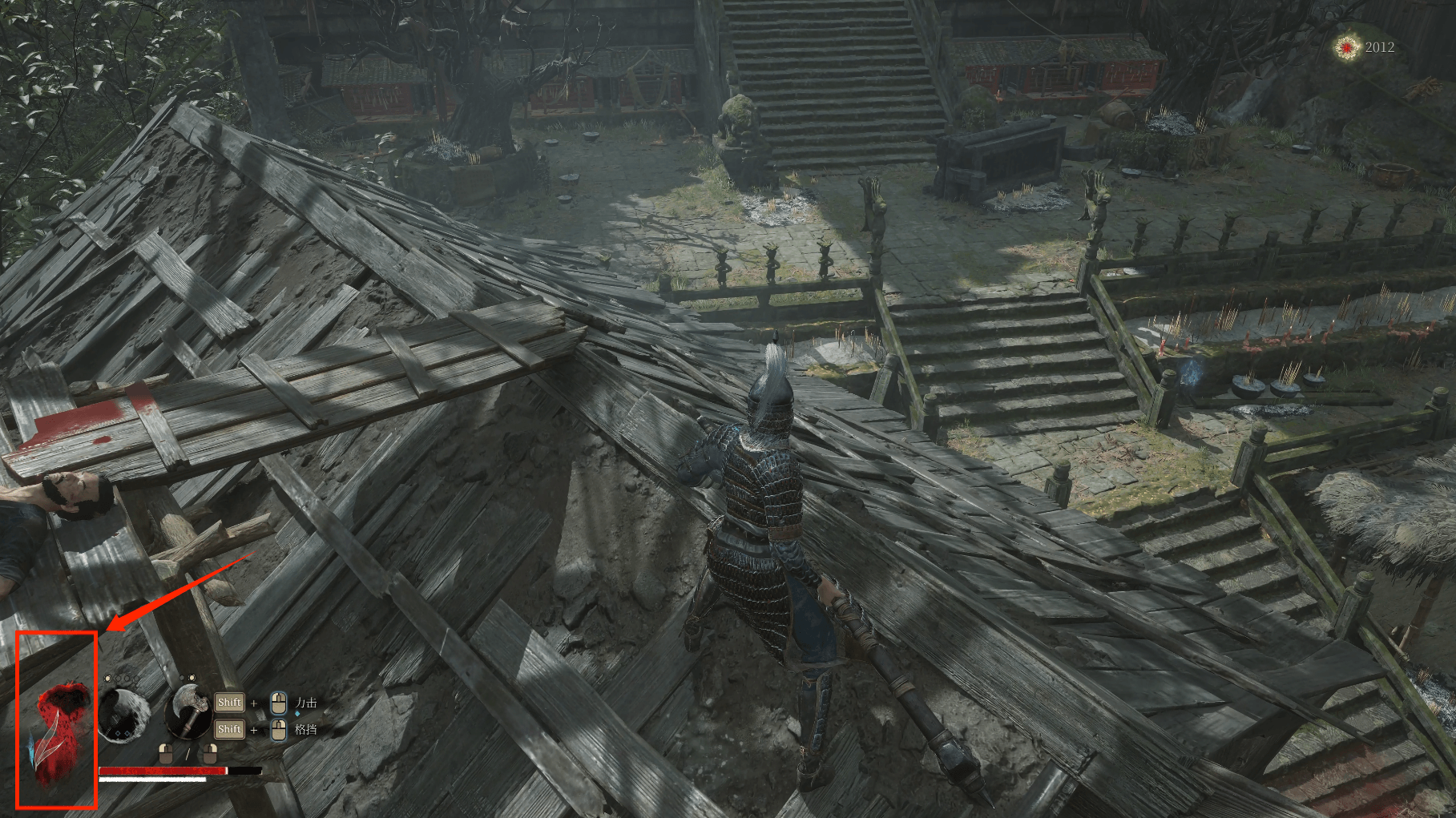 游戏左下角有两个长条,上方红色的是生命值,当被敌人攻击命中时会扣减,如果生命值耗尽无常就会死亡,称为【羽落】,遗失一定数量的赤汞(击败怪物获得的"魂"),并在最后一次拜命的神龛复生,如果回到死亡的地方可以取回遗失的赤汞。下方条是耐力,无常攻击闪避等动作都需要消耗耐力,耐力不足在战斗中容易陷入劣势,战斗中记得时刻关注自己的耐力条剩余量。如果耐力不足可以暂时和敌人拉开距离,角色在不消耗耐力的情况下会快速恢复耐力