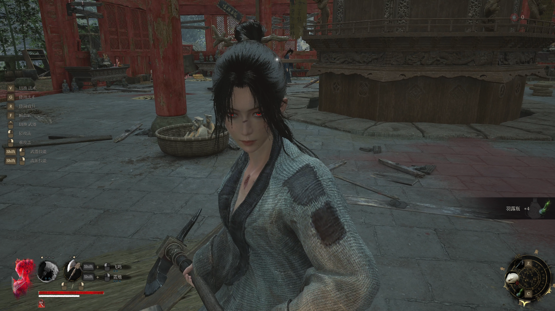 击杀人形敌人或者被敌人击杀【羽落】时会增加心魔值,心魔值可以通过左下角无常侧身像和无常眼睛颜色来大致判断,心魔值升高侧身像和眼睛会变红,心魔值越高红色越深,也可以通过打开ESC里的角色面板来查看具体心魔值。心魔超过九成时会提升造成和受到的伤害,同时死亡掉落的赤汞也会提升。