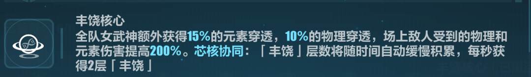 δ(全队共享增益)芯片更适合没有毕业角色,无法在每次循环都能积攒足够「丰饶」层数的阵容,这个时候仅需要一个角色触发满层的增益,全队都可获得此效果。