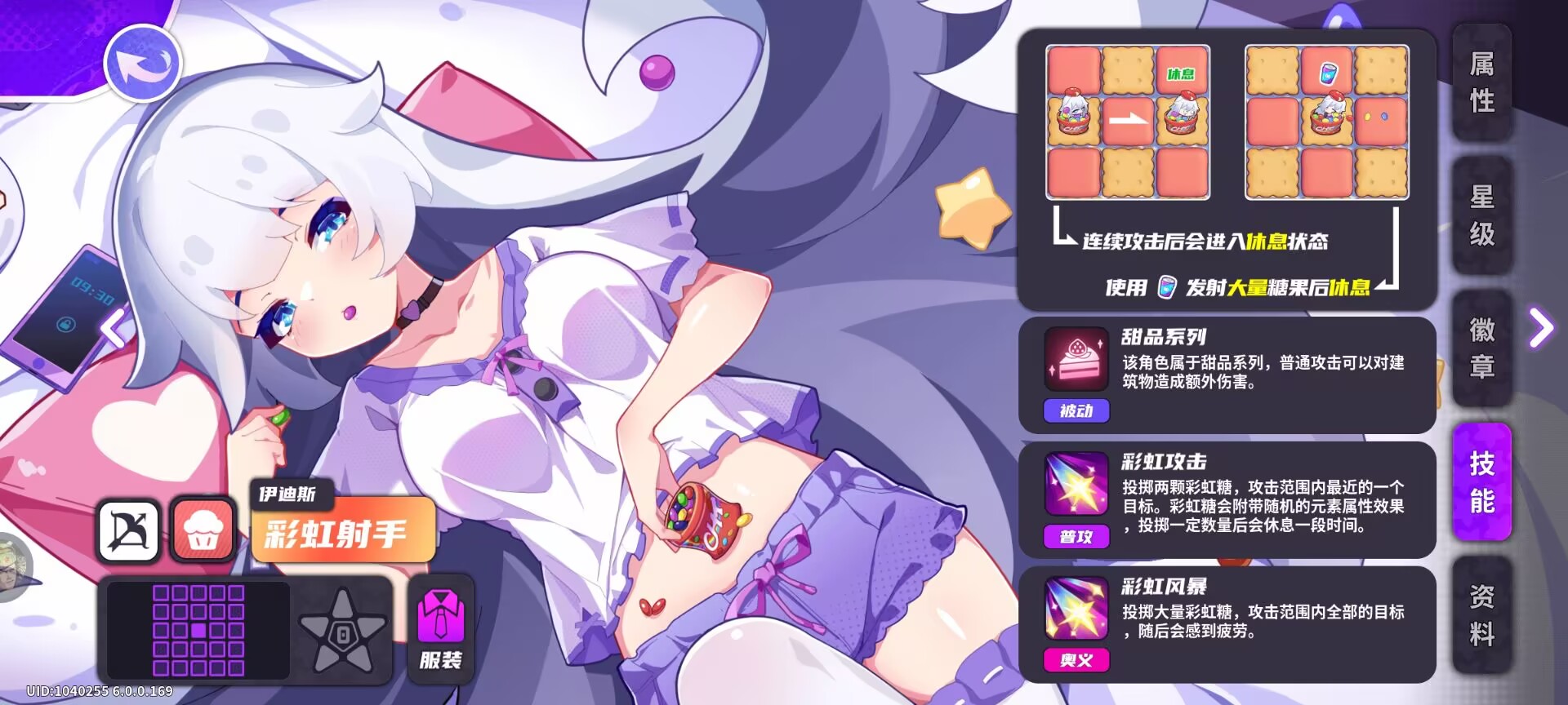 比较有趣的点在于这个角色的星级突破,1/2/3/4/5星分别获得光/电/火/水/冰系的免疫和特攻增伤,并且在1/3/5星级还有双爆加成。由于无法稳定打出物理伤害,因此物理套装直接不用考虑。