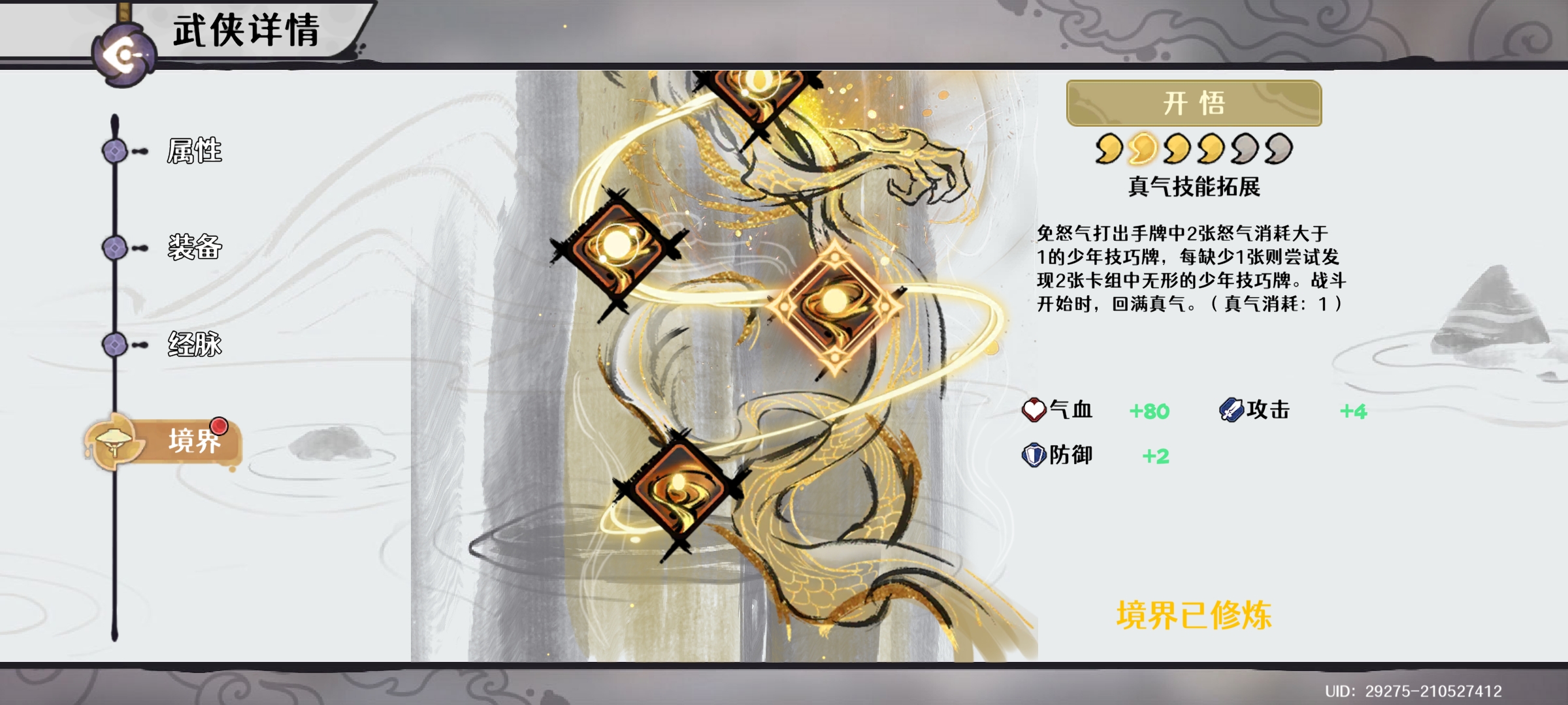 1.手牌无技巧牌时,真气技可以当做免费获得4张【不同名】的技巧牌;