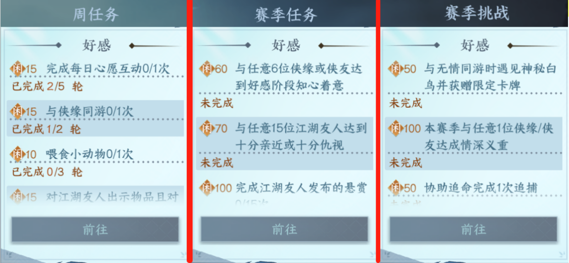 2.赛季任务大家之前有累计的就能获得经验,没有的这个赛季慢慢来需要的好感值很高。