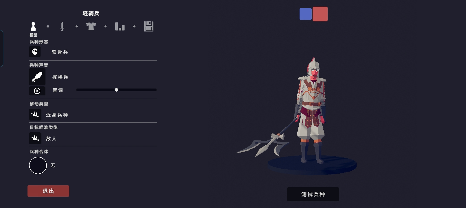 兵种8:轻骑兵,手持弯刀,速度快,能冲破敌人阵型(由于马的模型不能在兵编里展示,所以只展示骑兵,合体兵种在后面展示)