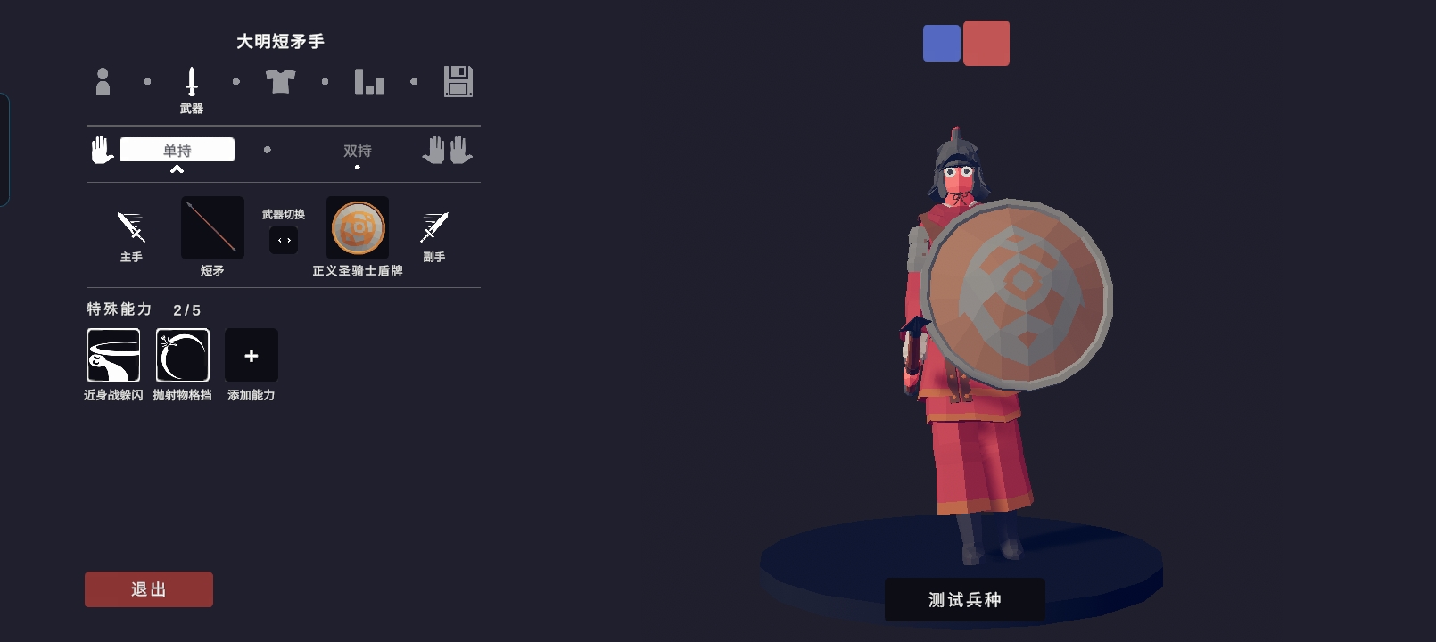 兵种1:短刀手,该兵种手持短刀和盾牌,可以格挡敌人的弹射物