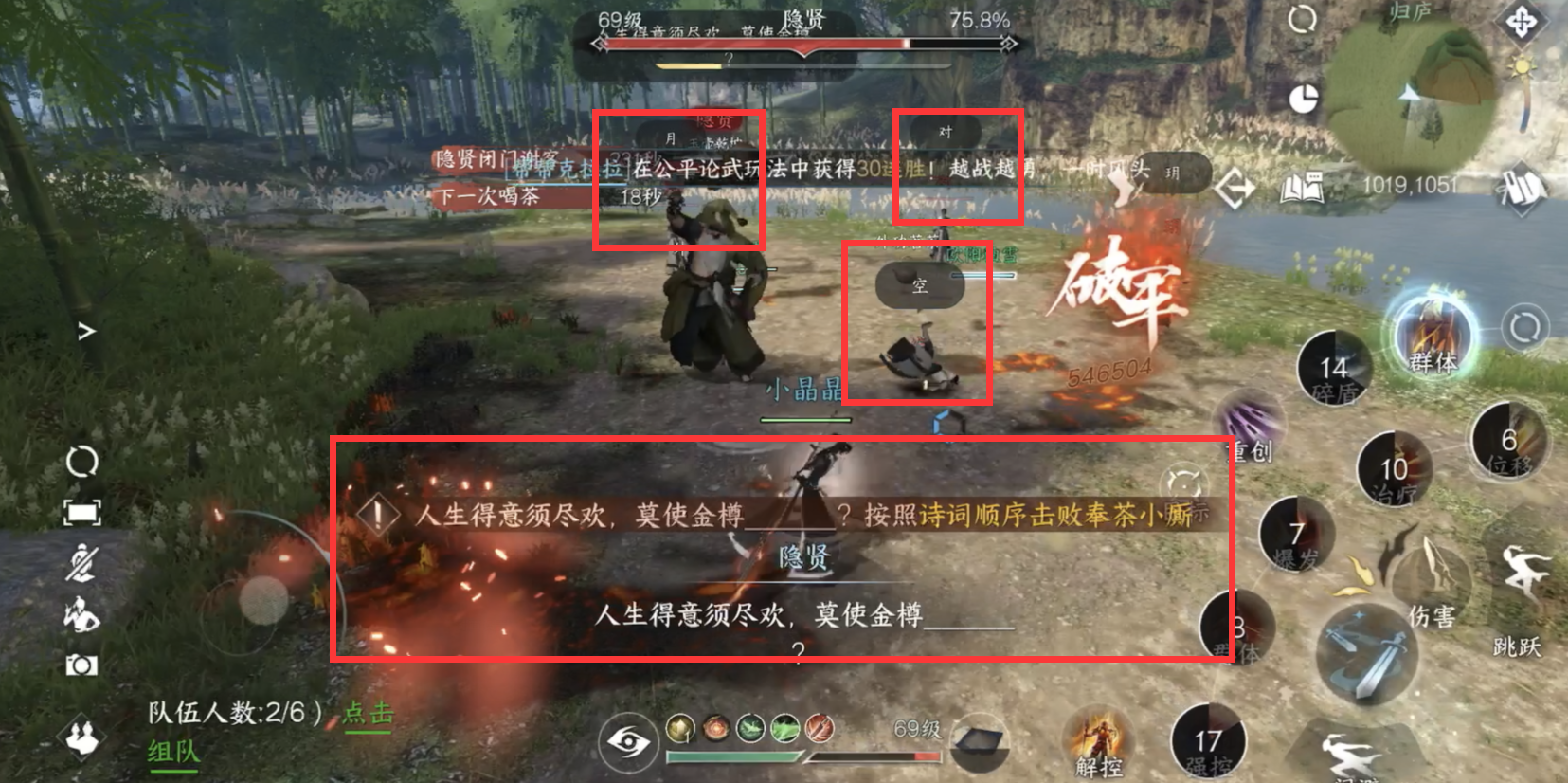 2.喝完茶后,奉茶小厮出来后不能在随意击败,而是要根据隐贤提供的诗句空白处的词按顺序击败,实在不知道怎么回事,可以提前打吧单人看看是什么机制就好!