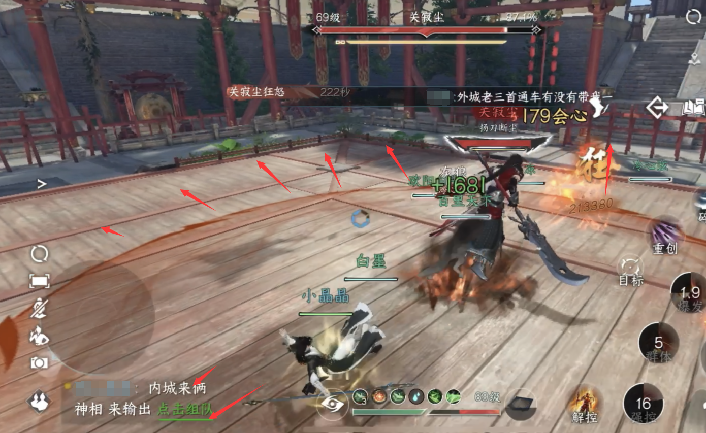 4.关寂尘释放霸刀横拦的时候如果挨到就放解控技能往出跑就好,伤害不是很高!