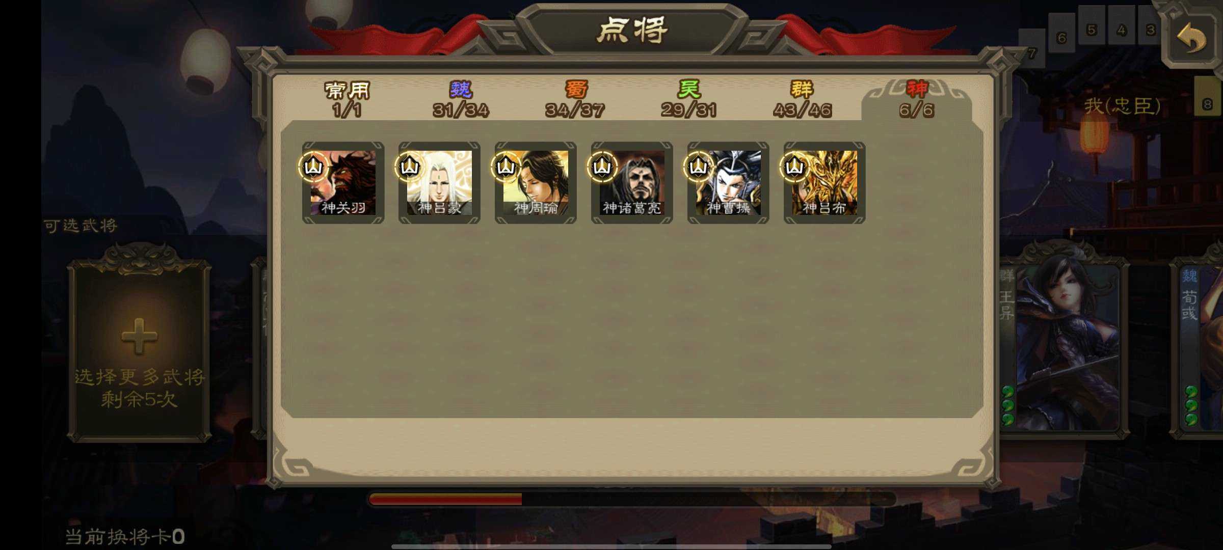 这个是单机版的三国杀,进游戏不要登录直接点右上角的进入游戏就可以玩了,再次重申不要点登录,点右上角的进入游戏,里面的标武将和界武将我就不说明了,神武将不是只有图片上的那6个,每次都会刷新,实在不行也可以去那些从其他五个势力的最下面翻一下看看,有的是爆改的武将,有的神武将也藏在下面,总结就是这些了,能给积分就给点,没有积分白嫖也要说一声