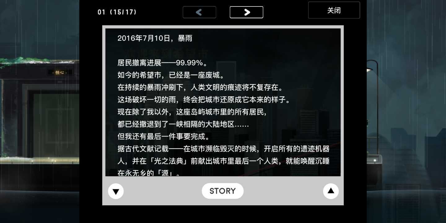《雨纪》是一款画风精美、音乐动人的休闲解谜游戏。 内容简述: 《雨纪》讲述了引导者来到一个被雨水淹没的城市,她用手中小小的光,点亮灯和石碑,让雨水退去,拯救这座城市。玩家扮演游戏中的神秘女孩,控制场景中不同的光来操作机关,让雨水退去,拯救城市。 此版本为完整版,无需解锁。