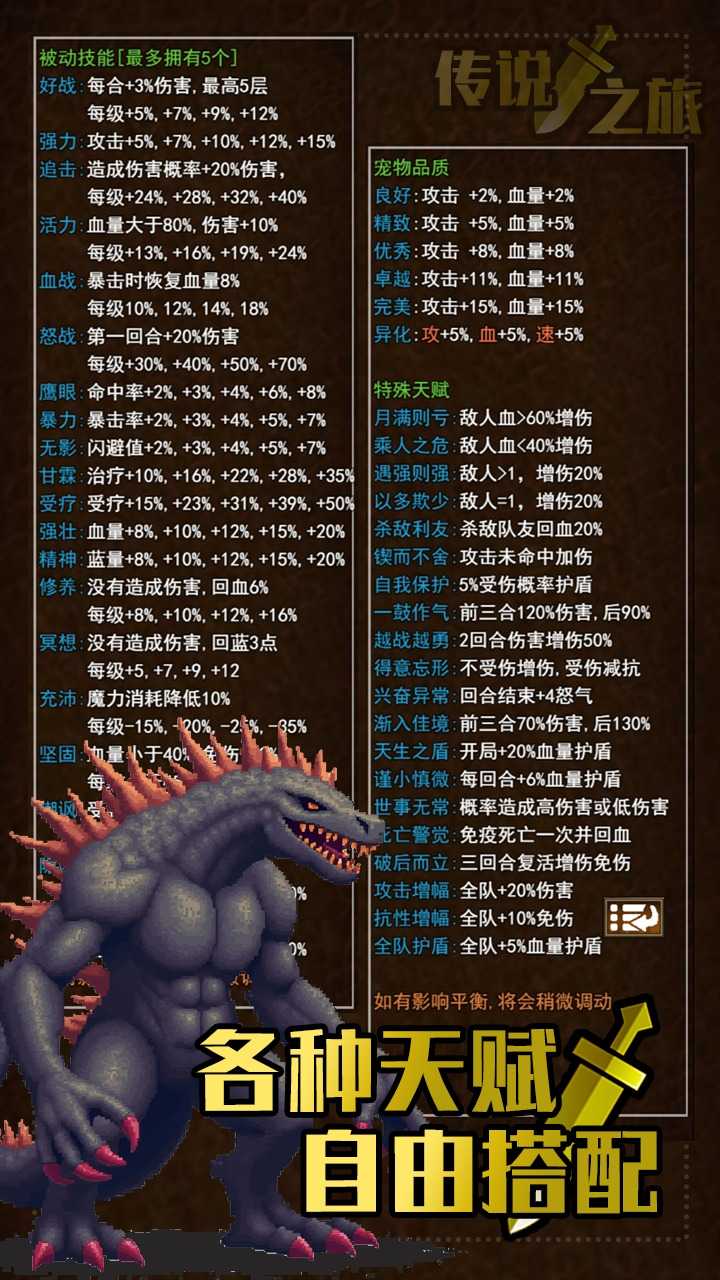 这是一个剑与魔法的世界,充斥了各种强大的魔物,你需要收集各种装备,带领你的战宠走向传说