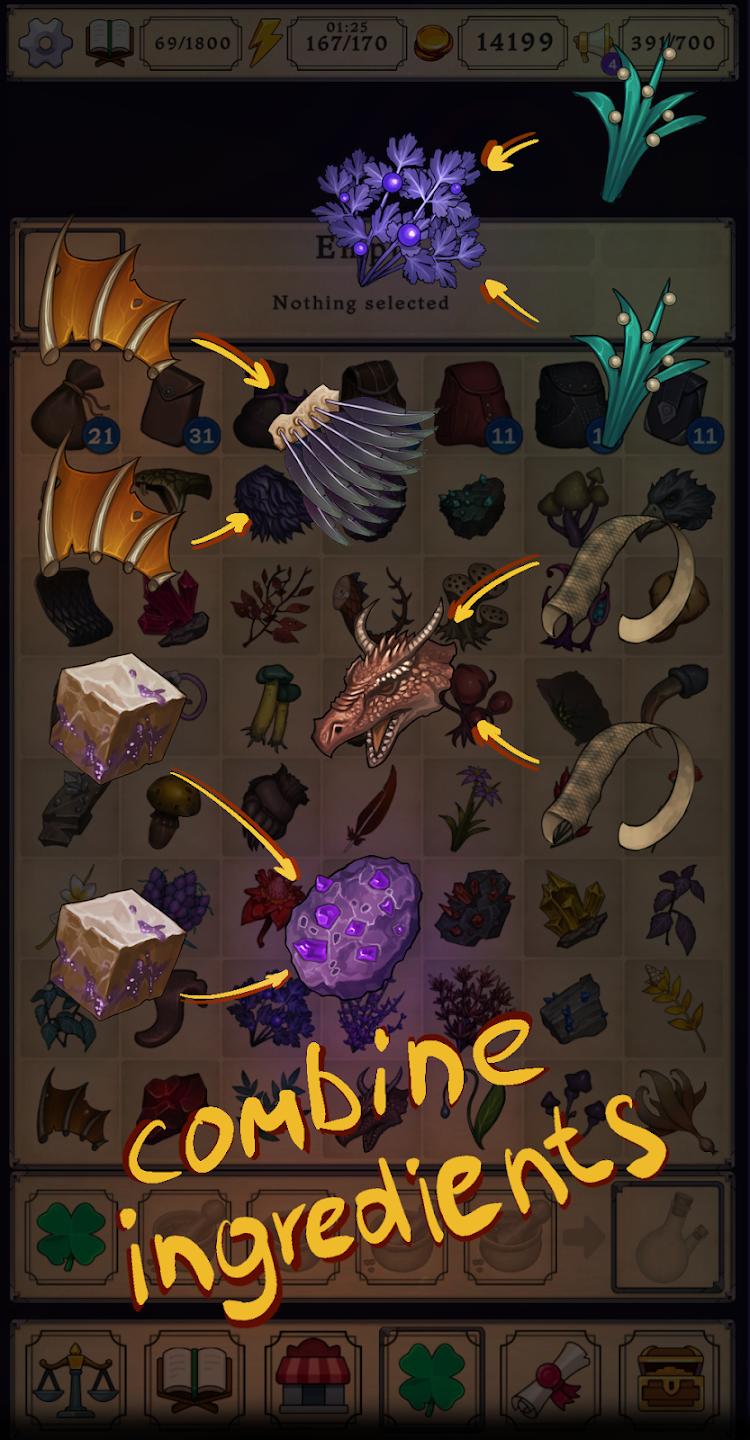 通过研究成分的特性并混合它们以获得各种药水,感觉自己是一个真正的炼金术士。 游戏特色: - 一个有趣的制作系统,鼓励探索和实验。 - 超过 100 种药水。 - 混合超过 139 种独特的成分。 - 超过 400 个独特的客户和超过 500 个独特的订单。 - 悦耳的音乐 游戏流程。 - 根据客户订单酿造药水或填满您的柜台,使交易更加活跃。 - 组合成分以获得更昂贵和稀有的物品。合并相同的成分可以提高它们的等级。 - 在自己的温室中种植稀有植物 - 发展你的商店和实验室,赚取更多收入,完成更复杂和有趣的订单。 - 雇用冒险家、猎人和矿工,以获得更多稀有和有趣的食材。 - 发明自己的食谱,研究植物的特性,成为著名的炼金术大师。 -没有中文!悲~