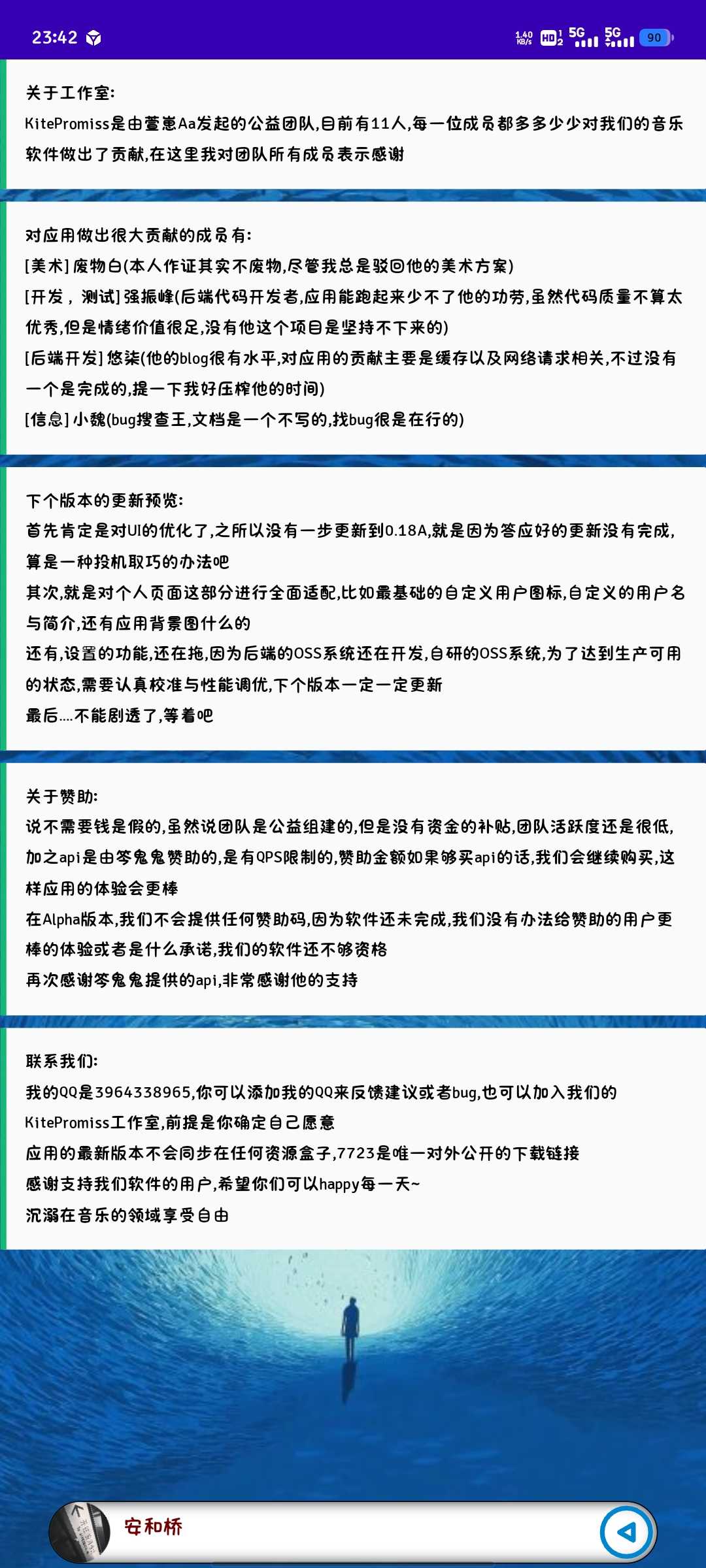 音域更新日志: ______________________________ 版本: 0.17.5Alpha 版本号: 18 更新日期: 2025.10.23 ______________________________ [更新]预览歌词完成 [更新]通知栏完全适配 [更新]支持了热门搜索,点击即可快速搜索热门歌曲 [更新]现在可以点击歌手进行相关音乐搜索 [更新]新增了音频响应的校准逻辑,如果某个音乐不可用,不妨等待10秒让程序自行尝试校准 [更新]新增了关于页面的相关内容,现在可以查看我们的留言了 [调整]在搜索界面点击歌曲时会自动展开全屏音乐 [优化]针对校园网对获取音乐时长的相关逻辑进行了优化 [优化]搜索页面的展示效果更加顺手 [优化]对ViewUtil中的渲染相关代码进行重构,现在渲染速度更快,代价是软件占用内存略有提高 [优化]对网络不佳的情况,程序会自动对进度条不可用进行了修复 [优化]歌曲列表交互更棒了 [优化]预览歌词的速度现在达到了秒级内 [修复]播放按钮更新错误问题 [修复]第一次请求歌曲歌曲列表没有更新的问题 [修复]每日30首歌曲在网络负载较重时错误渲染重复歌曲导致列表歌曲达到错误的60首歌曲