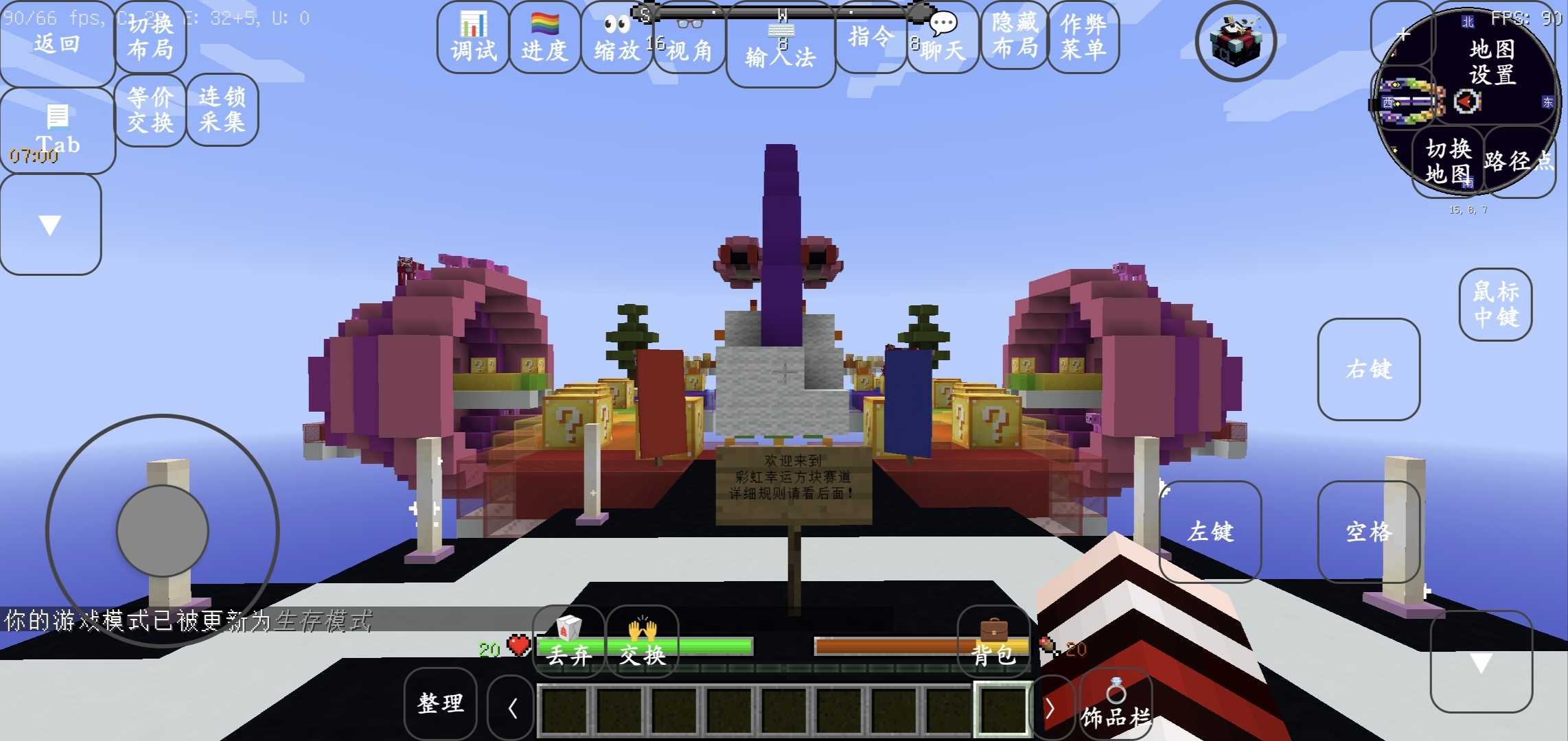 我的世界:幸运方块大冒险(地图是搬运的) 整合包版本:v1.0 世界版本:v1.12.2版 介绍:一款主要以开幸运方块为主题的整合包,玩家可以在自由生存或者PVP地图进行选择游玩,整合了大量的整合包,尽情游玩吧! 主要模组:幸运方块; 次要模组:暮色森林、等价交换、无尽贪婪、神秘时代、植物魔法、砧板神器、最终之剑、车万女仆、天才小狗; 难度提升:僵尸意识、精英怪、突变生物;