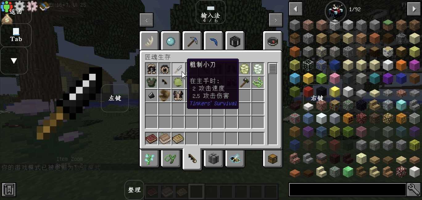 我的世界:疯狂原始人 整合包版本:v1.0 世界版本:v1.12.2版 介绍:一款主要以荒野求生为主题的整合包,因为添加了匠魂,所以前期需要通过收集植物纤维和碎石,制作碎石工具,搭建帐篷度过夜晚,收集食物,保持身体需求,赶快来试一下极具有挑战性的整合包吧! 主要玩法:全靠自己摸索,生存、发展;