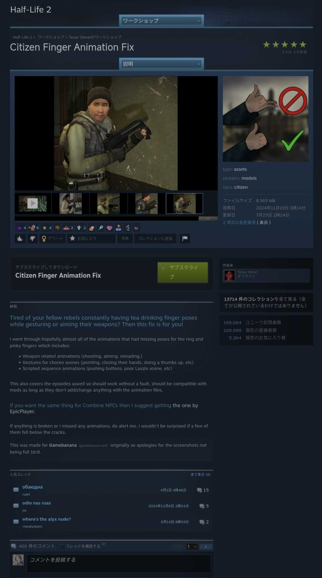 半条命2 市民手指动画修复相关信息