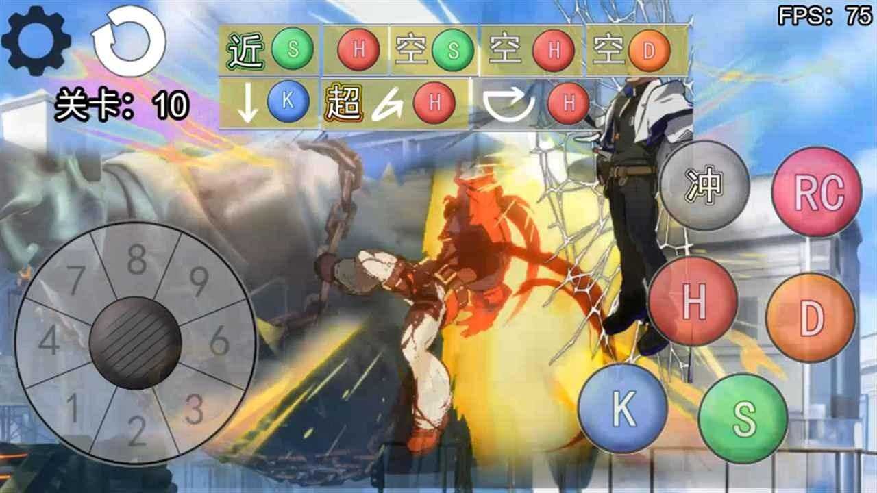 《罪恶装备:奋战》是一款适合新手的格斗游戏,本游戏为该游戏的同人游戏,是一款连招训练器,用于帮助想入坑该游戏,或者其它格斗游戏的新人快速适应此游戏的连招和系统。 游戏一共包含了11个连段关卡,由易到难,游戏带有光圈和下落块两种连段辅助,帮助你确认指令输入时机,并且支持调整游戏速度,可由慢到快进行练习,形成肌肉记忆。通关这11个挑战,你将会成为罪恶装备连段高手! K、L、I、O为脚、轻斩、重斩、碎尘,游戏里叫K、S、H、D,越往后伤害越高,速度越慢 电脑版按键(可通过模拟器等安装至电脑):AD左右移动,S下蹲,W跳跃,KLIO普攻,N技能1,P技能2,U红取消,Q重置位置