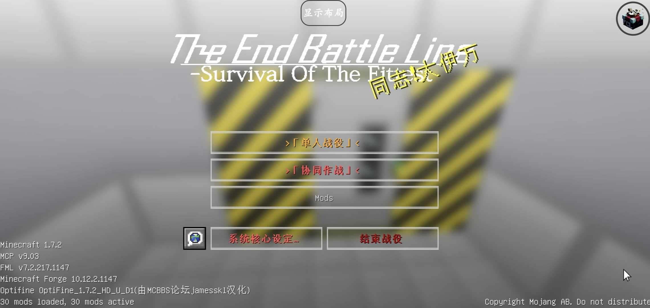 ——版本介绍—— 我的世界:最后战线(重置版+周年纪念&DLC)[搬运的] 整合包版本:v1.2 游戏世界版本:v1.7.2 ——游戏介绍—— 一款主要围绕剧情战斗为主要玩法的整合包,在当年与亡灵战争和冒险者传说并称为我的世界RPG地图三巨头,玩家需要扮演士兵不断的去击杀腐化生物,升级自己的装备,获得神器,完成战役; ——玩前须知—— 注意: 1:该整合包需要将内存分配拉到8G以上; 2:进入游戏后需要等待游戏配置全部加载完才可点击背包; 3:如果遇到崩溃,闪退等问题可重进试试,无法解决就换渲染器,如果还玩不了的话就换手机; 4:没有mod就在启动器内找到版本隔离,打开或者关闭;
