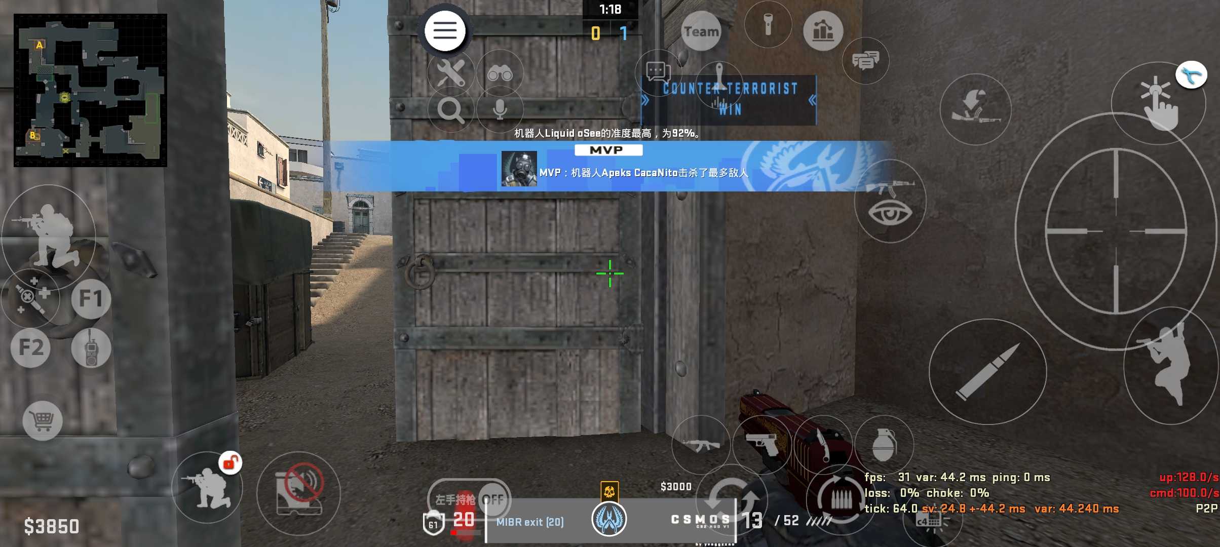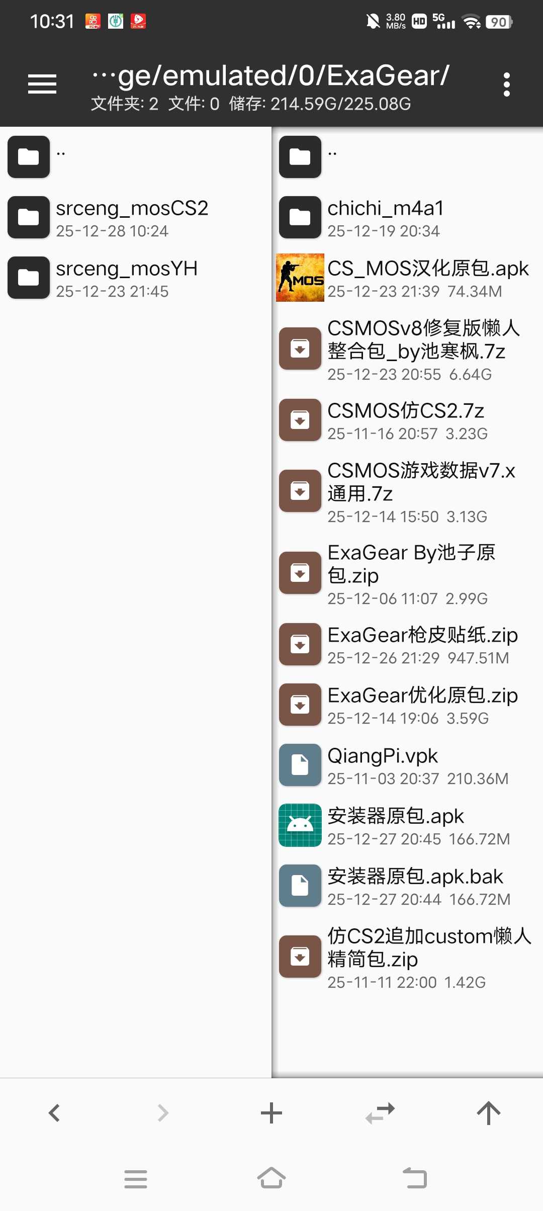终于把仿CS2的安装器做好了,和优化版会安装在同一目录(如下第一幅图所示),自带汉化版启动器(会让你安装),本包是阉割版,无反射,默认分辨率为2408x960可以去csmos→custom里面的videoconfig_android.cfg修改(如最后的图,不会的别乱改),弹孔贴图可能有错误,进入游戏启动器,点“选择游戏路径”,找到ExaGear,点一下,再点srceng_mosCS2,点下面的“选择当前目录”,最后启动就行了。