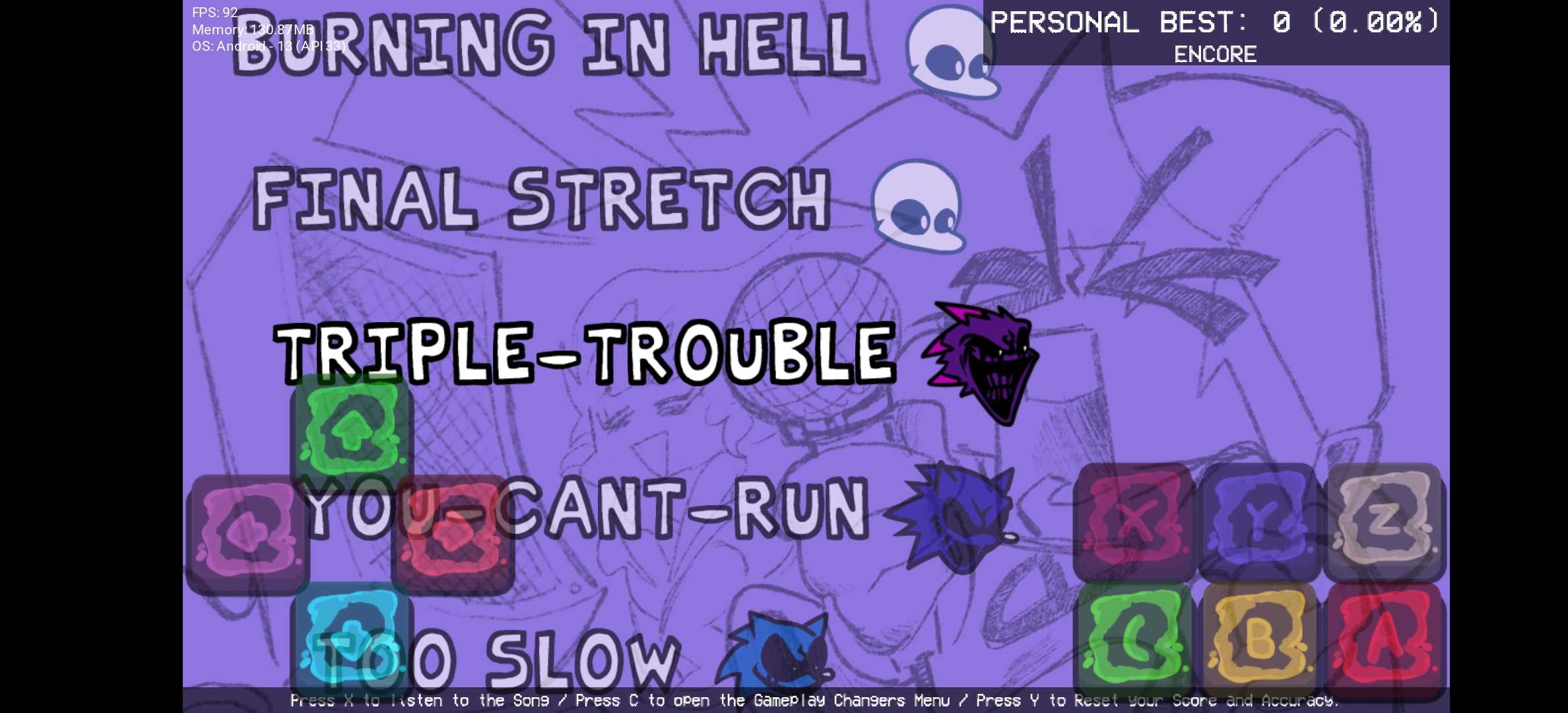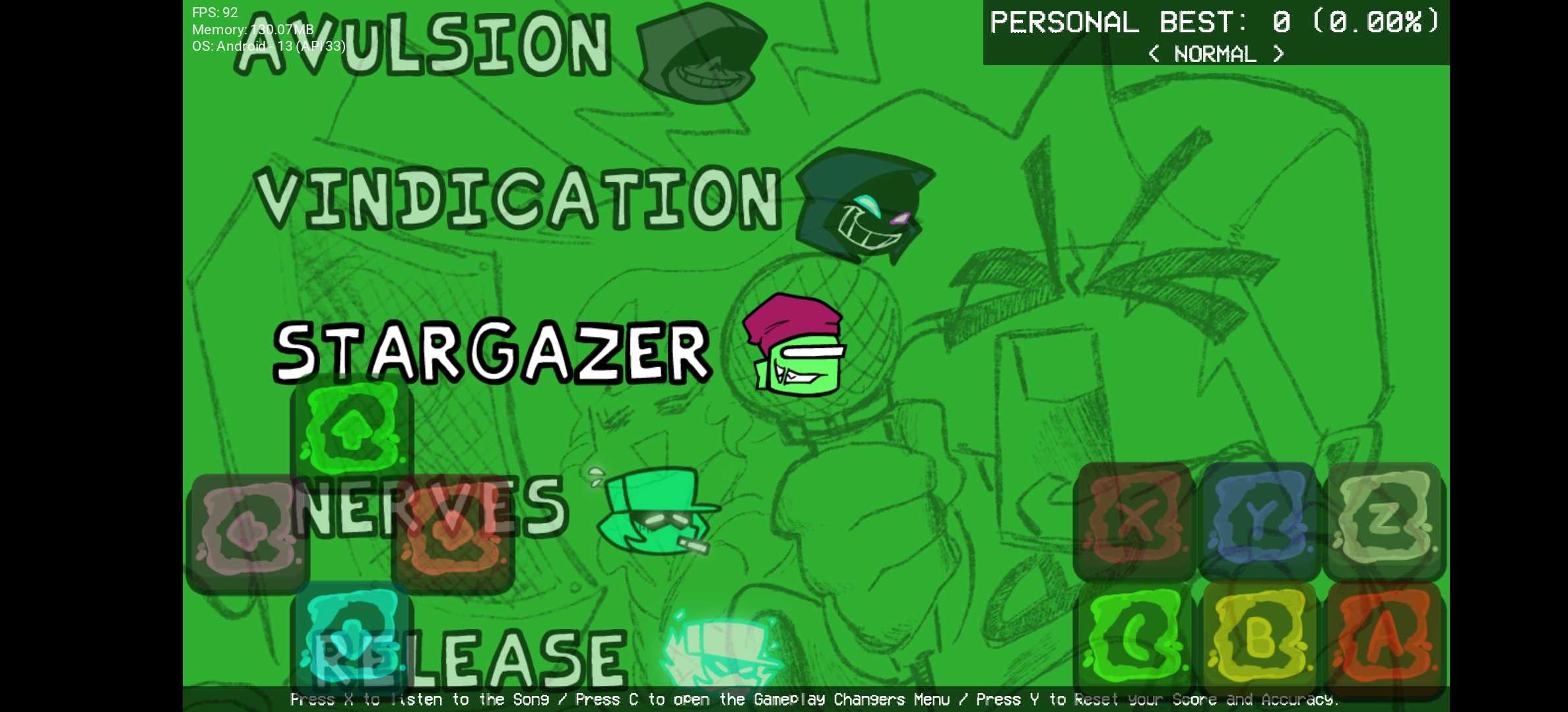 ⚠️请阅读游玩须知!⚠️ pe解压,一共20首曲子,每首都是我觉得好听的曲子,还有很多我想放的模组,会在后面的版本出现 游玩须知: 1.Dustin关卡请依次进入options,GRAPHICS,然后关掉第三个选项(shaders)。除非你手机配置非常高 2.观星者那关不知道为什么bf贴图有问题,但不影响游玩 3.ic模组sans关卡请仔细分辨那个骨头按键要点哪个不要点,或者是开练习模式玩 4.sky,too slow曲目可以改难度,改了之后曲子跟原来不一样 5.scp939那关我忘了给它改强制困难了,要用困难模式玩 6.最后祝大家玩的开心^v^