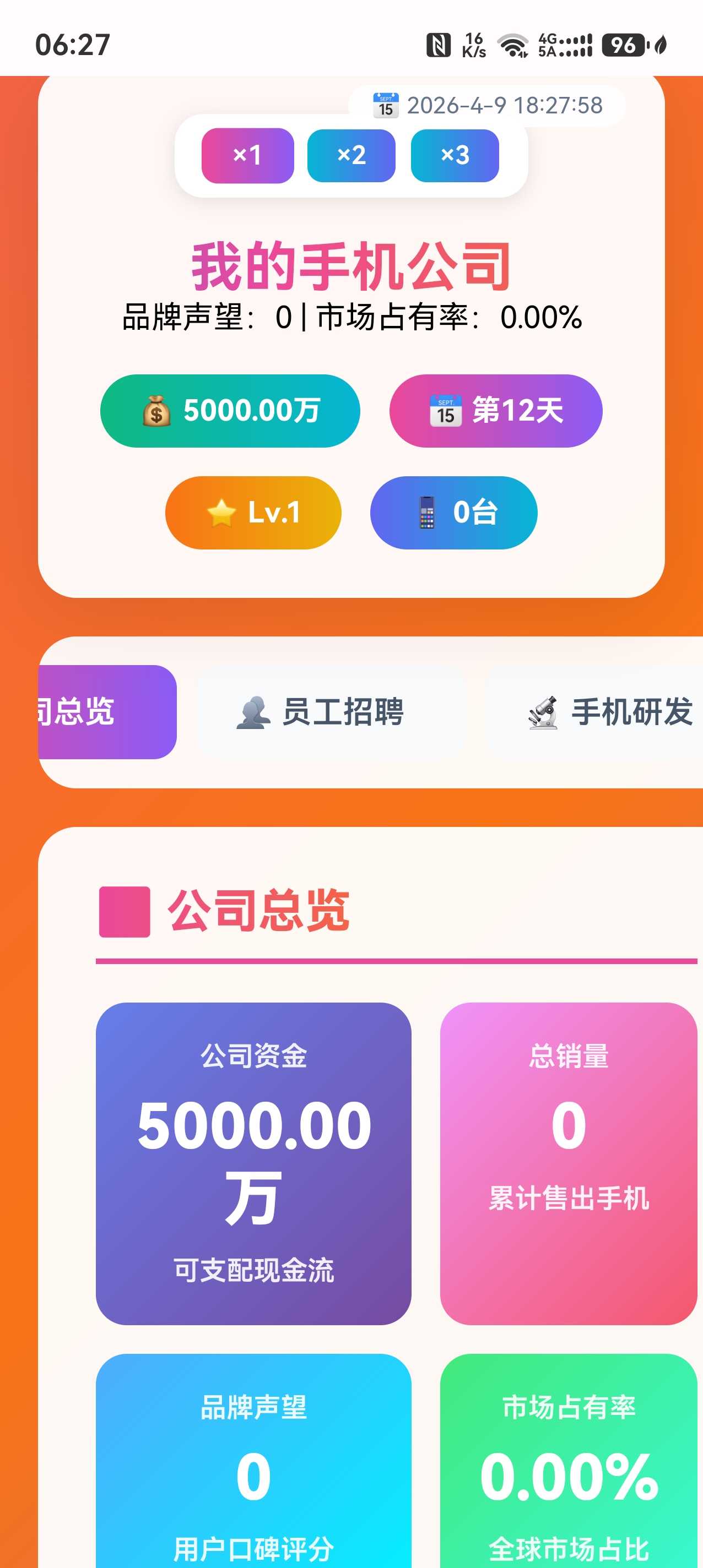 进入游戏先招聘员工,然后研发手机,再生产手机再销售。