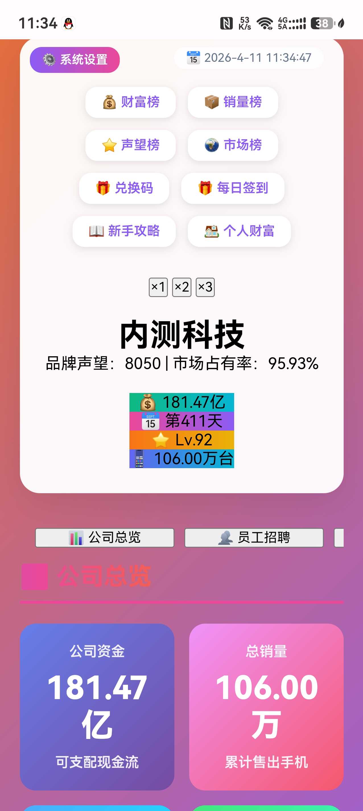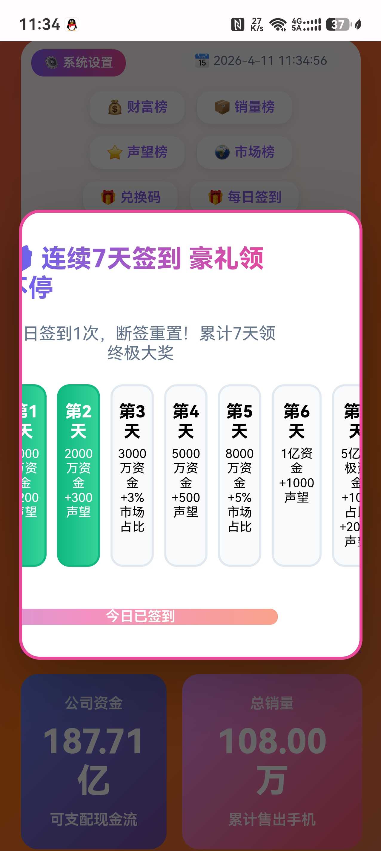 1.新增每日签到,新手攻略,个人财富。 2.工厂新增自动生产手机。