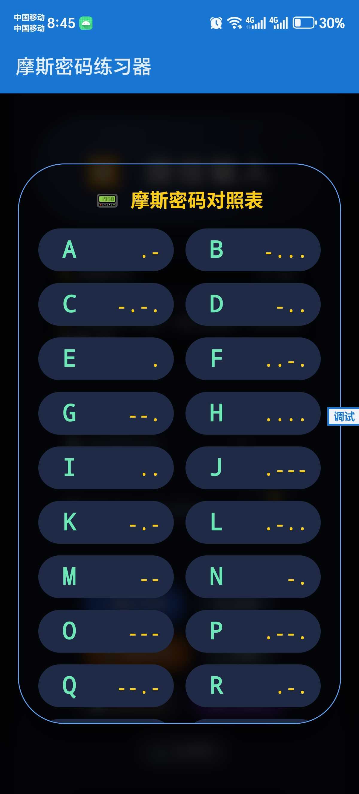 求评论QAQ 本软件系本人使用deepseek制作,遵循CC BY-ⓃⒸ-SA3.0(署名-非商业-相同方式发布)知识共享协议发布。 可以用来练习摩斯密码,有音效、有对照表(附一张)
