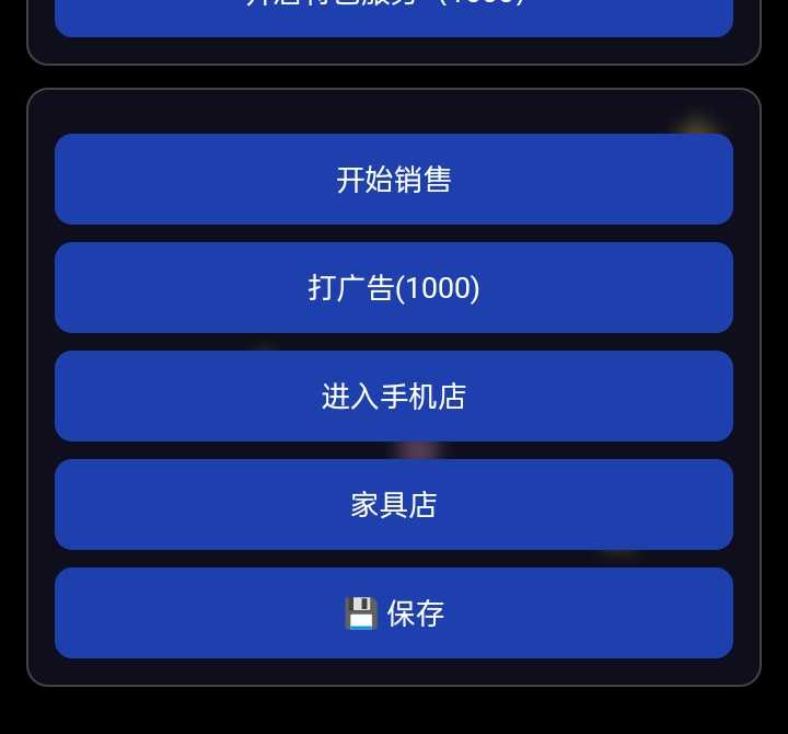 正式版 增加了: - -生产 - -教程 - -雇员 - -手机店 - -家具店 - -特色服务等 欢迎游玩 保存系统出错,建议不要删**