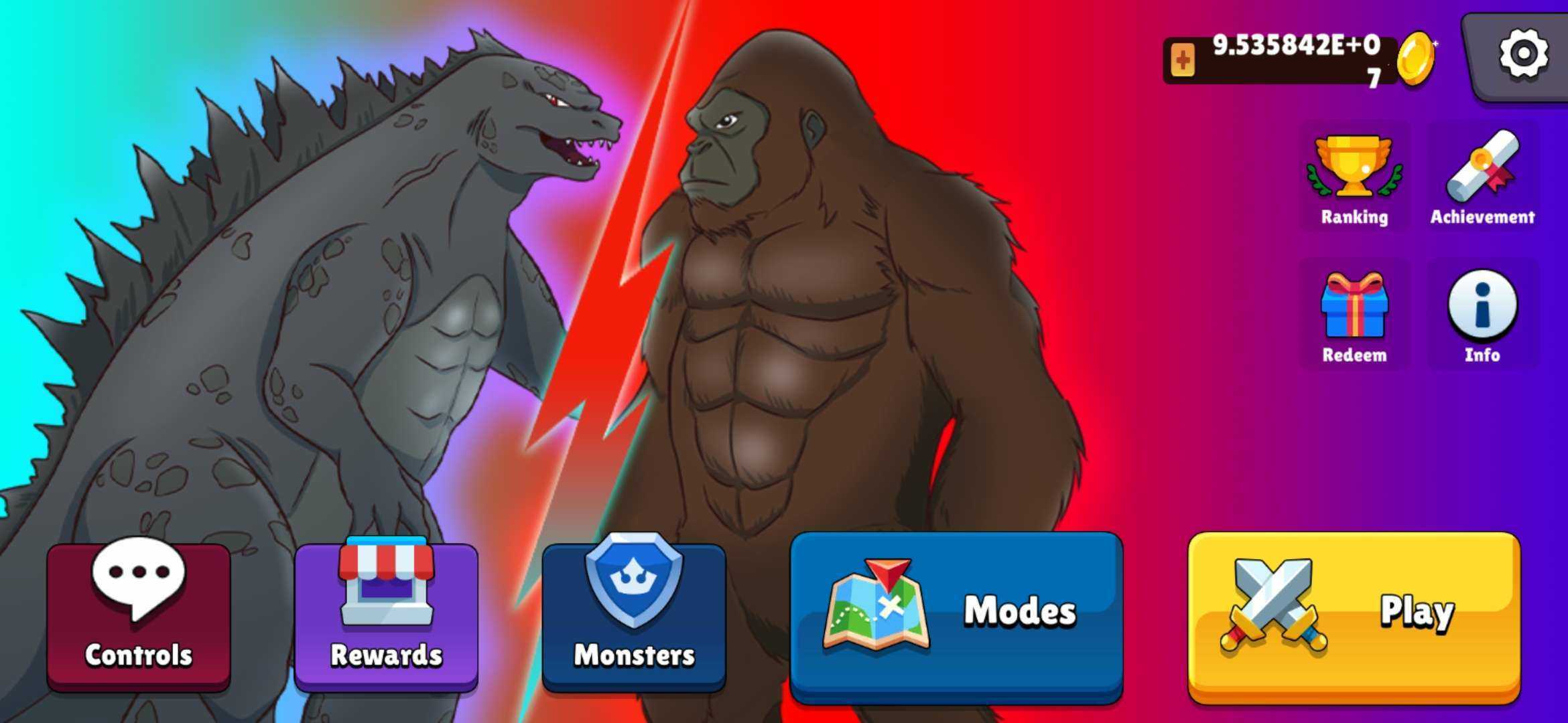 免广告获取资源(可在抽奖区域使用),金币使用不减反增。 简介 试试用哥斯拉去对决金刚。灵活躲避障碍,完成任务!